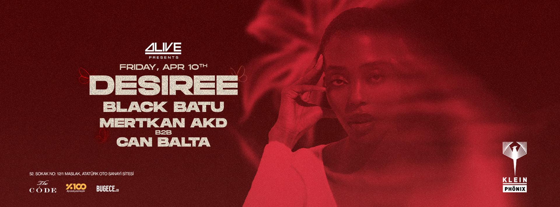 Bu özel gecede DESIREE’ye; Black Batu ve b2b performanslarıyla Mertkan Akd ve Can Balta eşlik edecek.