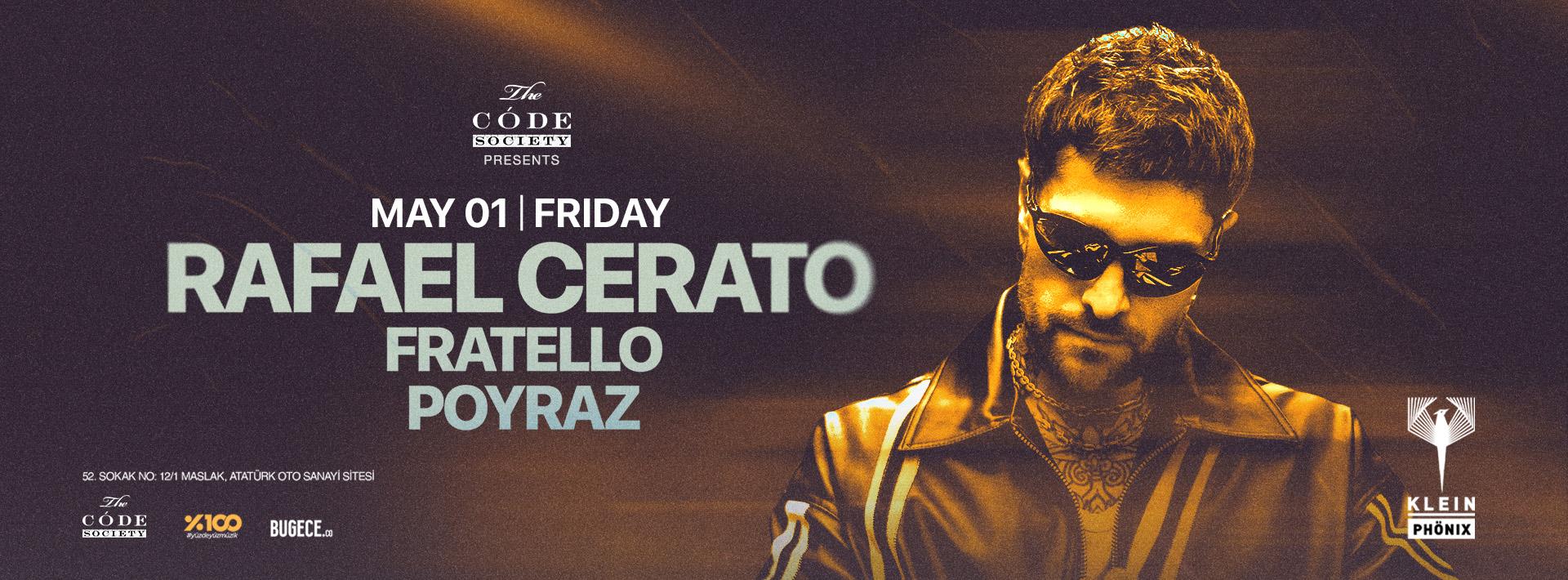 Gecede Rafael Cerato’ya progressive house ekseninde şekillenen özgün tarzıyla Fratello ve Klein Resident DJ’lerinden Poyraz eşlik edecek.